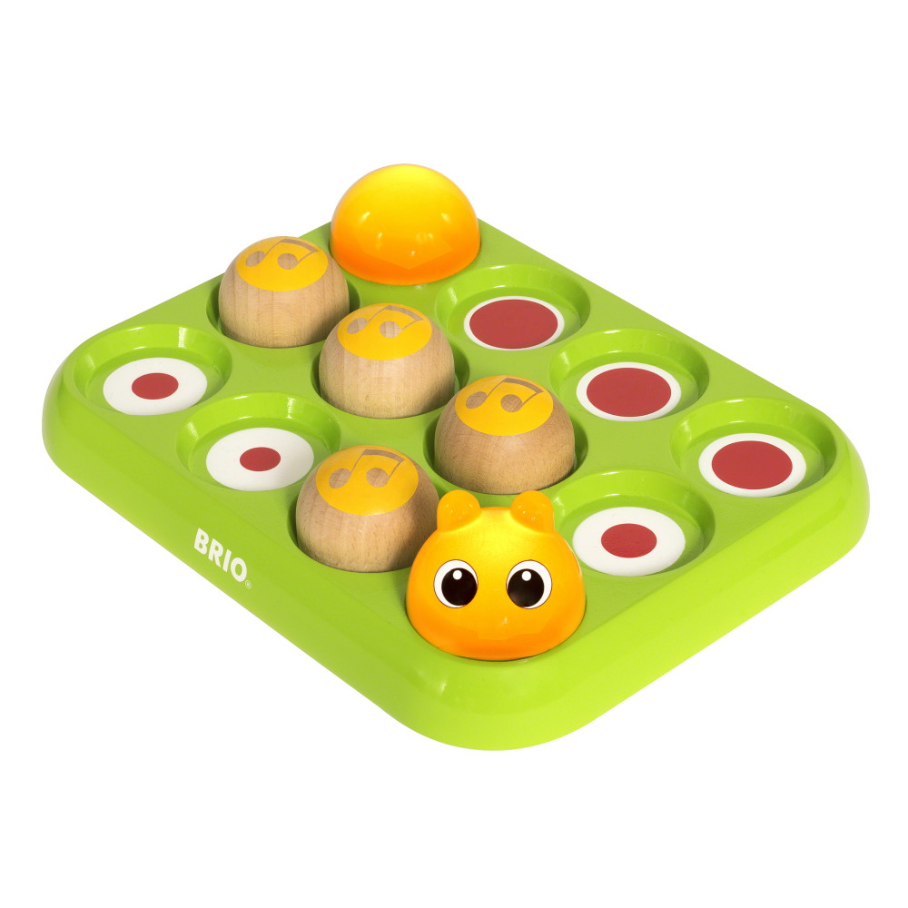 Kun puunupit asetetaan reikiin, jokainen reikä tuottaa oman äänensä. Toukankuvan pää ja takaosa voidaan liittää yhteen 10 eri tavalla, ja jokainen yhdistelmä palkitaan ainutlaatuisella melodialla. Täydellinen lelu kehittämään lapsen aisteja sekä ymmärrystä syy–seuraus-suhteista.