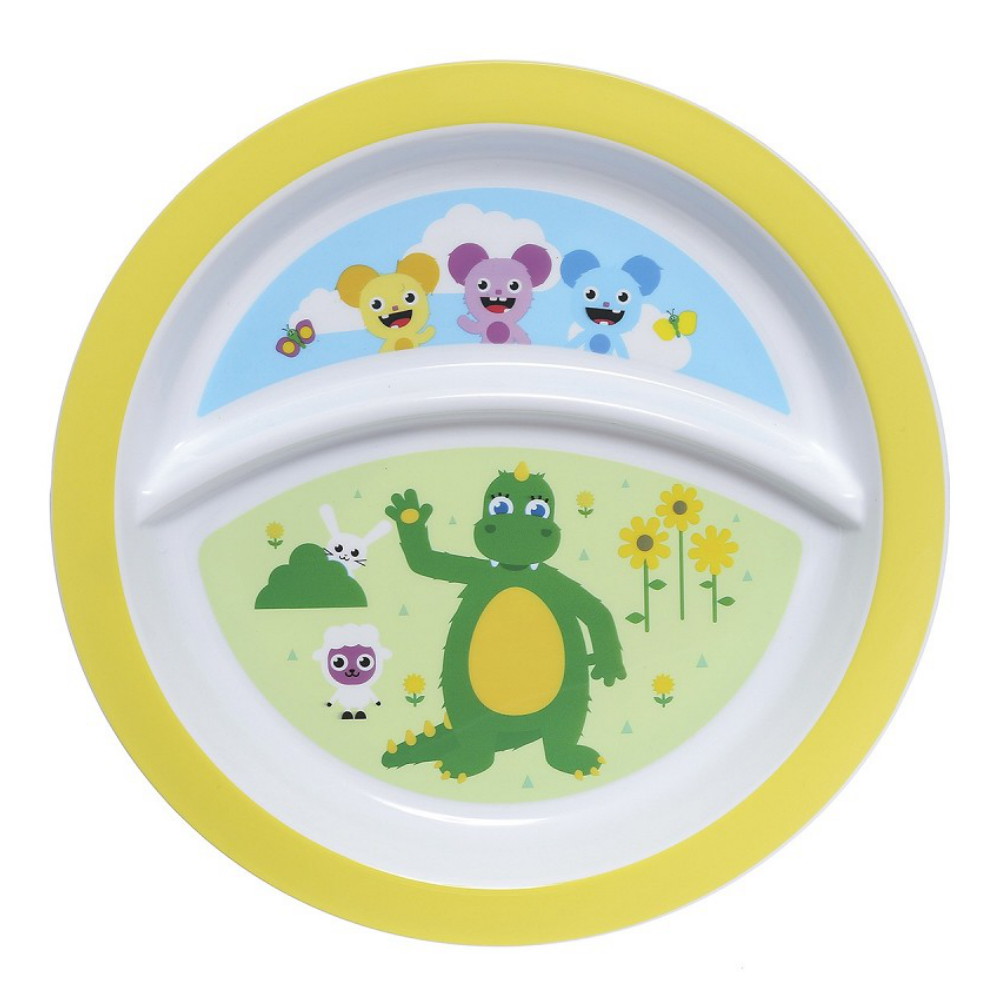 Kaunis 3-osainen ruokailusetti, jossa Bolibompa-aihe.