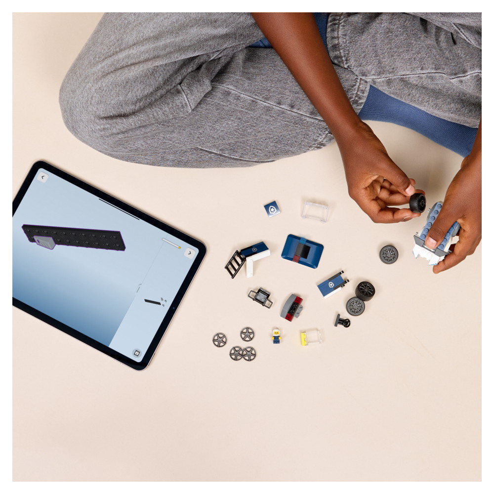 LEGO Builder sovelluksen avulla lapset voivat rakentaa LEGO City Menopelit sarjaan kuuluvan poliisiauton intuitiivisesti. Sovelluksessa voi zoomata ja kiertää malleja, tutkia 3D-ohjeita sekä tallentaa settejä ja seurata edistymistä. Setissä on 71 osaa.