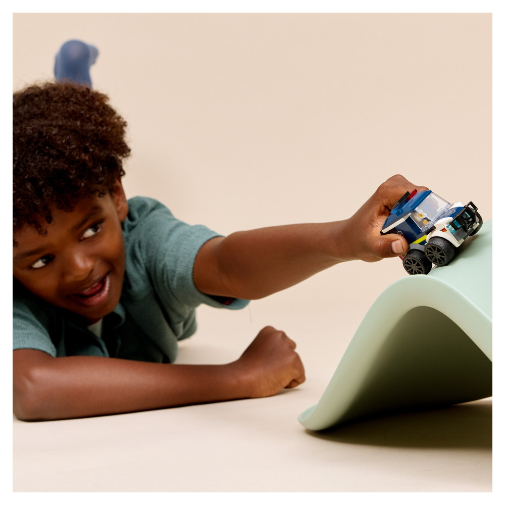 Helposti rakentuva poliisiauto on osa LEGO City Menopelit valikoimaa. Se on loistava syntymäpäivä‑ tai yllätyslahja autoleluista ja mielikuvitusleikeistä pitäville lapsille, pojille ja tytöille. Yhdessä muiden, erikseen myytävien LEGO City lelujen kanssa setti mahdollistaa vielä monipuolisemmat seikkailut.