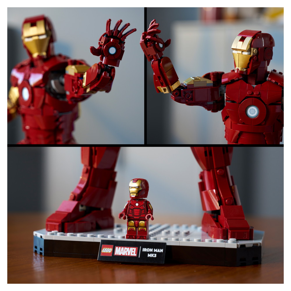 Yksityiskohtaisen, haarniska-asuisen Iron Man Mark 3:n kaula, vyötärö, hartiat, ranteet ja kädet on nivelletty, joten hahmon voi taivuttaa erilaisiin dynaamisiin asentoihin. LEGO ǀ Marvel hahmossa on kullanvärisiä yksityiskohtia, ja se seisoo tukevalla jalustalla, jossa on myös nimikyltti. Supersankari on huikea koriste-esine. Mukana on myös Iron Man ‑minihahmo, joka on valmis toimintaan Mark 3 ‑haarniskassaan. Rakentajat voivat ladata LEGO® Builder sovelluksen ja nauttia yhteisistä Build Together ‑kokemuksista ystävien ja perheenjäsenten kanssa. Rakennussetissä on 1 297 osaa.