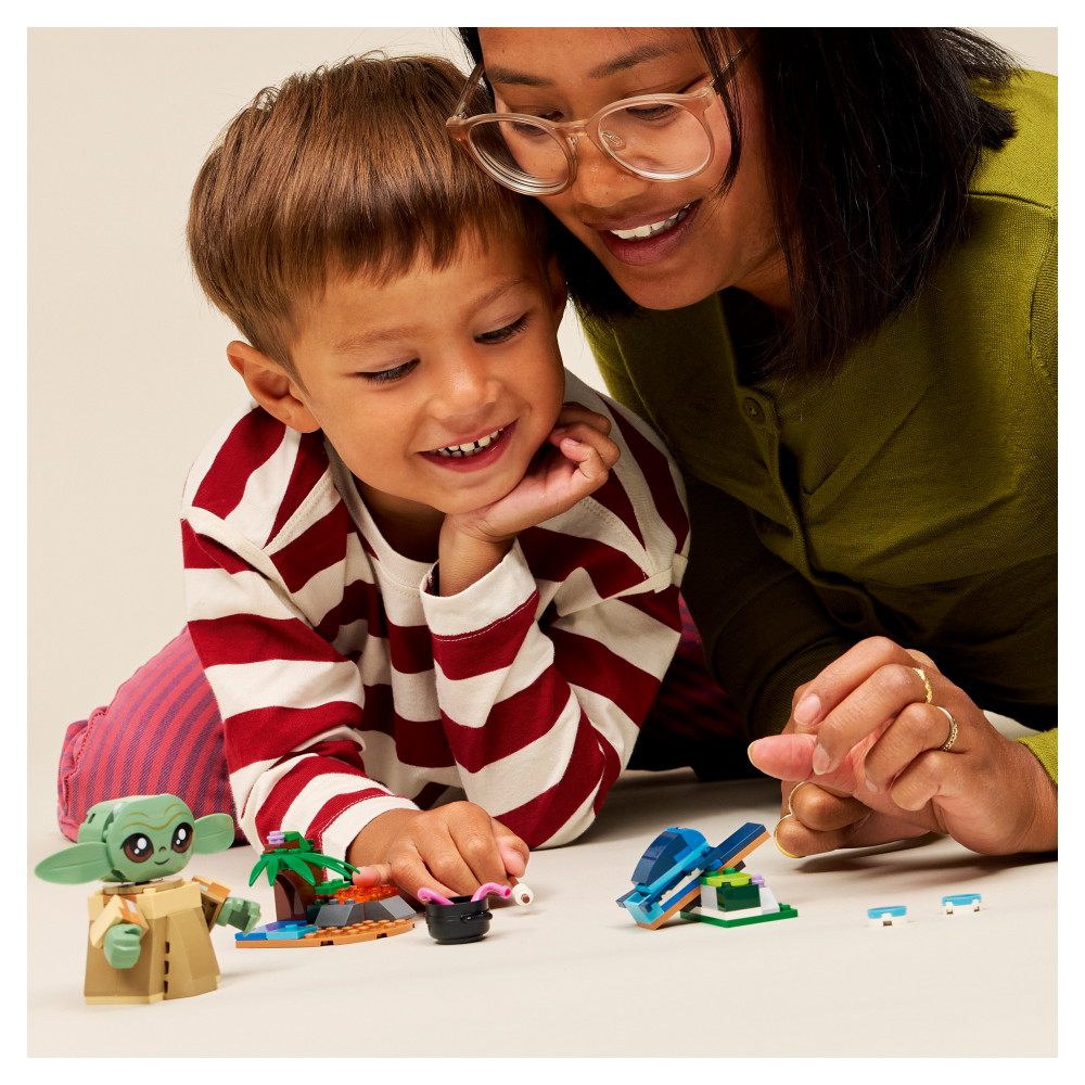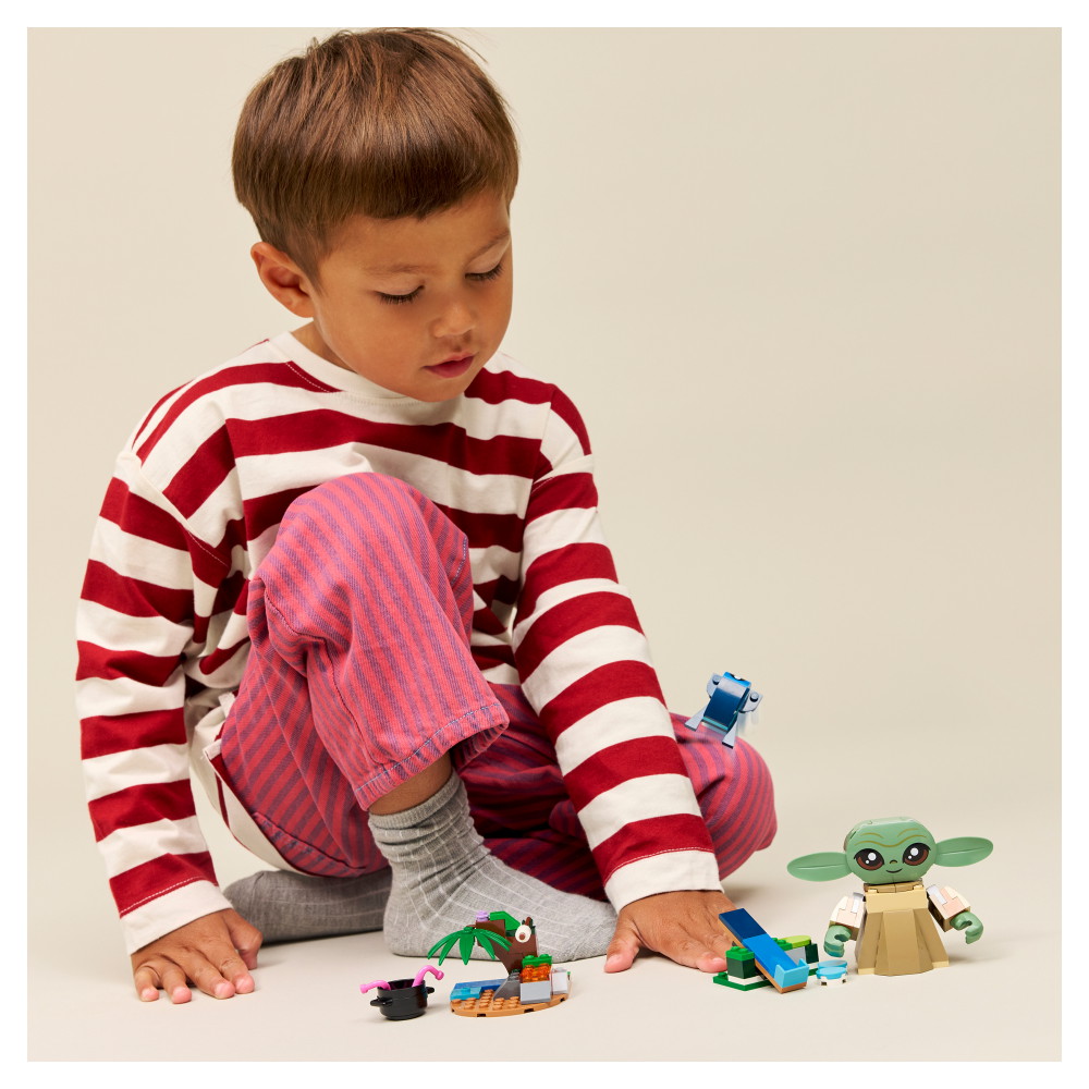Sorgan-sammakon voi laittaa hyppäämään katapultin avulla. Tulisijan ympärillä voi leikkiä kattilan, 2 lonkeron, tikkuun pujotetun vaahtokarkin ja 2 sinisen macaron-tarvikkeen innoittamia kohtauksia Star Wars: The Mandalorian‑sarjasta. Yksi macaron mahtuu Grogun vatsaan.