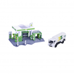 Tämä leluhuoltoasema on täydellinen ja monipuolinen leikkisetti rikastuttamaan pienoismalliautokokoelmaasi.