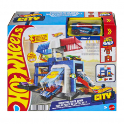 Hot Wheels City Downtown Police Tower -leikkisarja laajentaa leikkiä kolmella tasolla, jotka ovat täynnä lasten suosikkeja, kuten ramppeja, vaihteita ja realistisia ratatietoja.