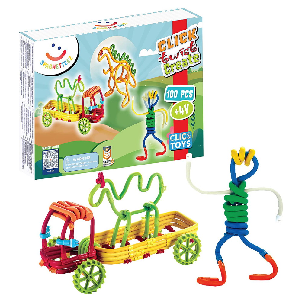 With the pasta-shaped sticks from Spaghetteez you can craft the most diverse figures: houses, elephants, flowers… The bigger your imagination, the more fun! Spaghetteez come in different colors and sizes so that your child can express themselves in the most creative way. Still need a little extra inspiration? In the instruction booklet you will find crazy creations with clear step-by-step instructions!