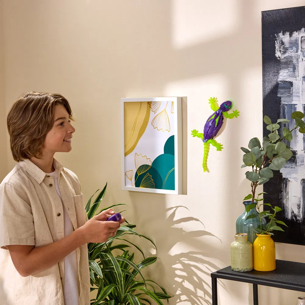 Katso, kuinka gekkosi juoksee lattialla ja kiipeää seiniä pitkin aivan kuten oikea gekko! Täysin toimiva kaukosäädin mahdollistaa intuitiivisen pelaamisen, sillä voit ohjata sitä juuri haluamallasi tavalla, ja LED-valaistut silmät saavat seinäryömijägekon erottumaan pimeässä!