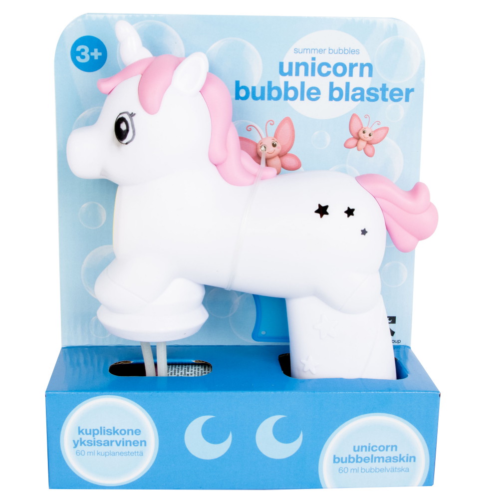 Yksisarvisen muotoinen saippuakuplapyssy tekee kuplimisesta todella hauskan seikkailun!