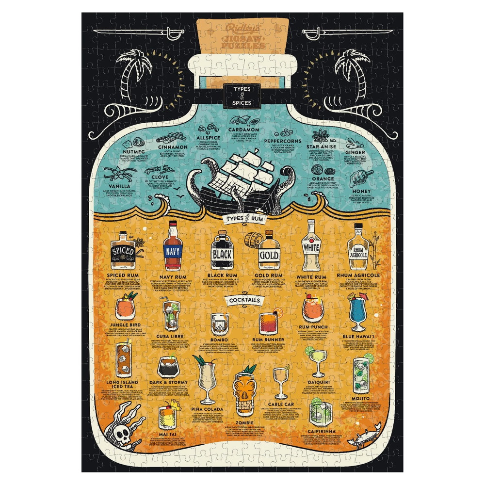 Upeilla kuvituksilla klassisista rommipulloista ja juomista tämä on loistava lahja sekä debytantti- että päämiksologistille. Kun palapeli on valmis, se on helppo kehystää luodaksesi taideteoksen, joka ottaa ylpeän paikan juomakaappisi tai palapelihyllyjesi yläpuolella.
