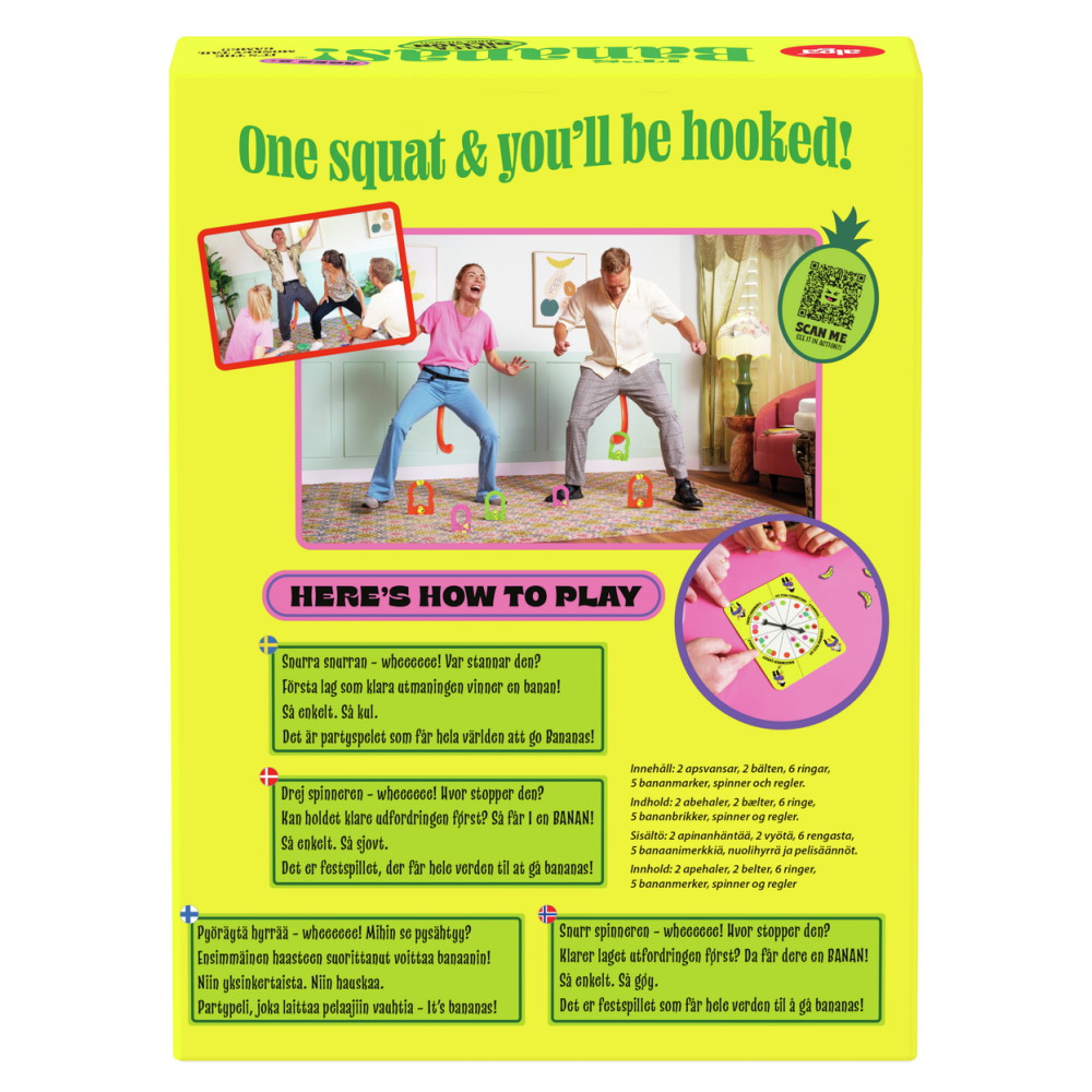 Täydellinen peli-iltoihin ystävien kanssa, polttareihin, polttareihin, puutarhaleluihin, vitsilahjoihin ja loistava lattiapeli syntymäpäiväjuhliin. It's Bananas on palkittu juhlien mestariteos, joka yhdistää sukupolvia, muuttaa tylsät olohuoneet hulluiksi viidakoiksi ja saa kaikki tuntemaan olonsa hieman... apina. Sisällä? Ulkona? Sillä ei ole väliä - peli toimii kaikkialla, missä on lattia, naurua ja ihmisiä, jotka eivät pelkää menettää kaikkea arvokkuuttaan banaanin vuoksi.