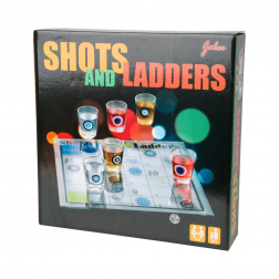 Sisältää: pelilaudan, viisi ainutlaatuista shottilasia ja nopat.