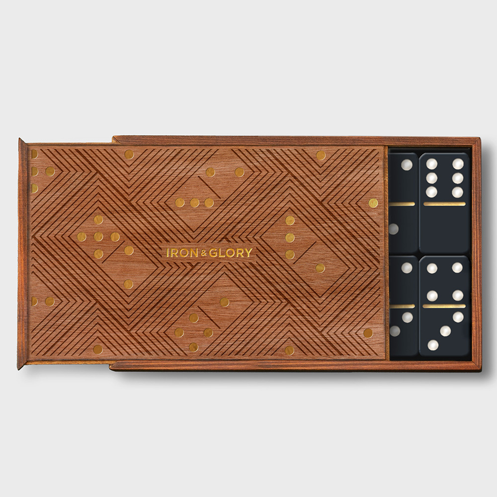 Iron & Glory Deluxe-dominolaatikko Kaksinkertainen kuuden dominopelin setti (28 laattaa) Normaalikokoiset melamiinilaatat.