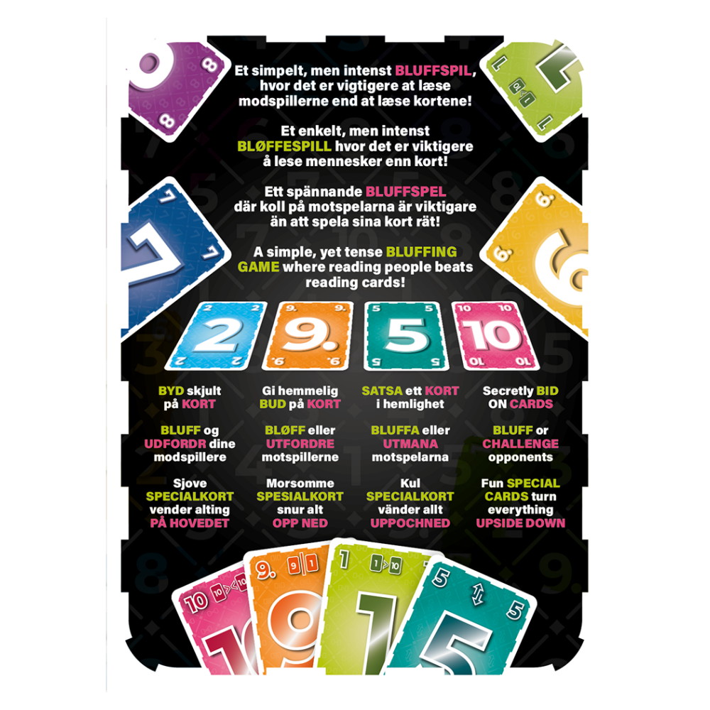 Kaikki pelaavat samoilla korteilla numerosta 1 numeroon 10, mutta voiton ratkaisevat omat valintasi, rohkeutesi ja taitosi bluffata oikealla hetkellä.