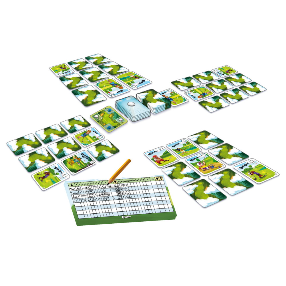 Peli päättyy 18 reiän jälkeen, ja pistekortin kärjessä oleva pelaaja voittaa. Hauskaa ja taktista ajanvietettä koko porukalle!