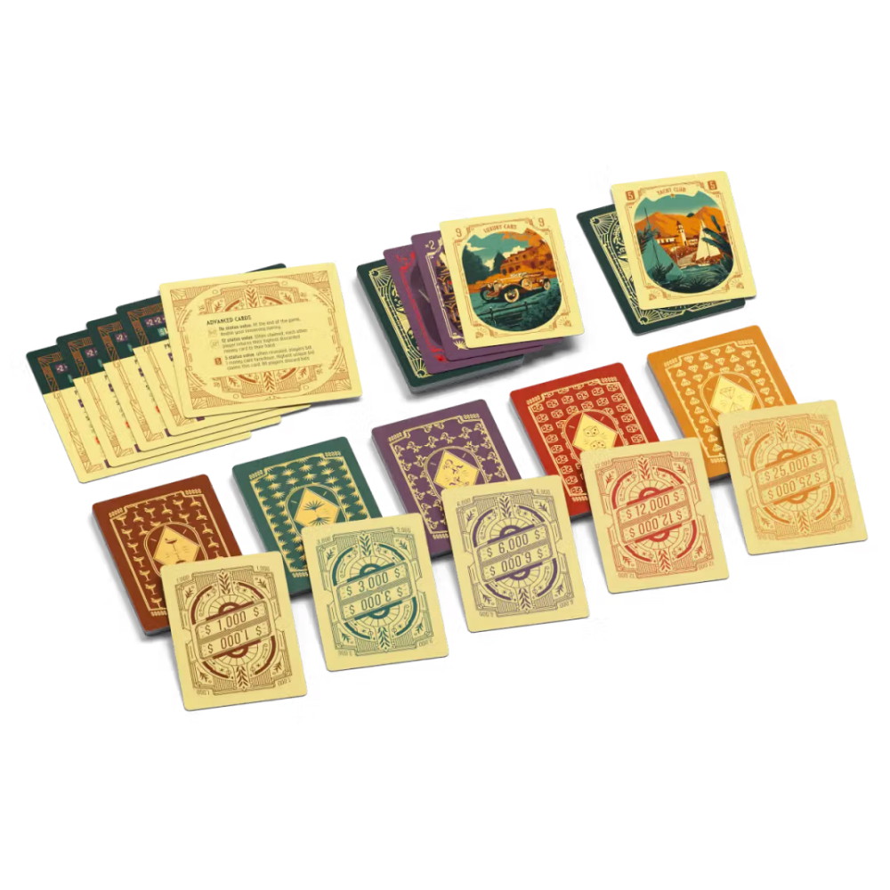 Tämä versio sisältää uusia Reiner Knizian suunnittelemia kortteja, jotka tuovat peliin lisää jännitystä ja yllätyksiä. Tyylikäs ulkoasu ja viimeistellyt yksityiskohdat tekevät jokaisesta pelikerrasta elegantin kamppailun asemasta ja arvostuksesta.