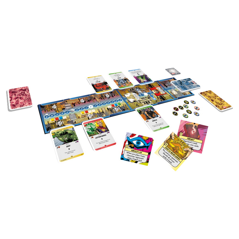 Each player takes one side of the battlefield in New York City, using their unique deck of either heroes or villains to control the landscape. Play your cards wisely, exploit the weaknesses of your opponent's cards, gather valuable artifacts, and seize strategically important locations.