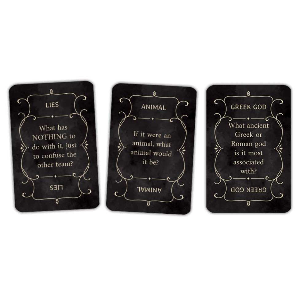 The spirit discards one question card face up, then returns the question card it's going to answer to their mediums, then slowly writes the answer one letter at a time for all to see. As soon as the mediums think they know what this clue word is, they yell "Silencio", and the spirit stops writing. The other team of mediums might see only the letter "Y", but if you know the question is "What color is it?", then you know the clue must be "yellow". To end your turn, draw two new question cards.