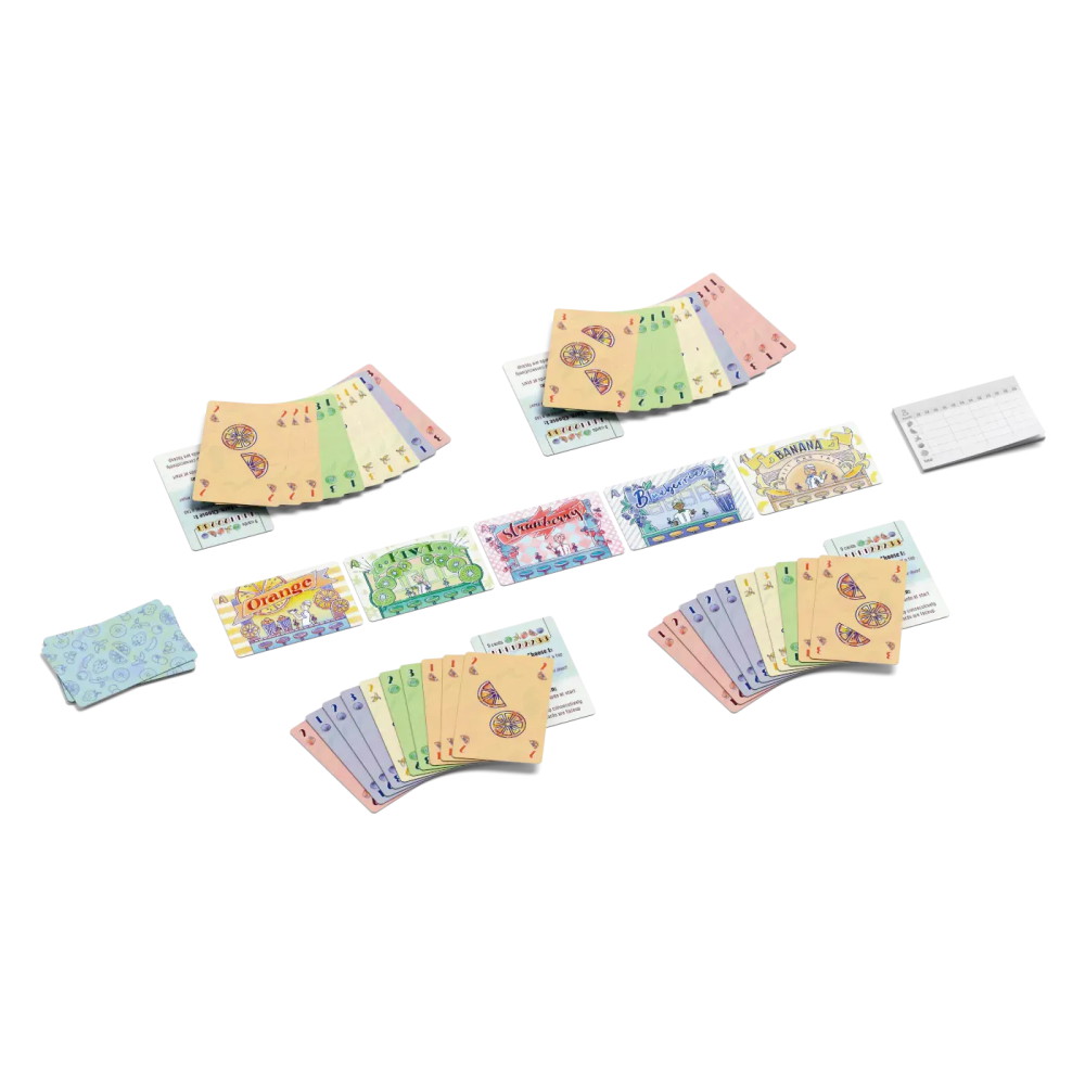 • Play a card face down in front of one of the taps labeled strawberry, blueberry, banana, kiwi, and orange.