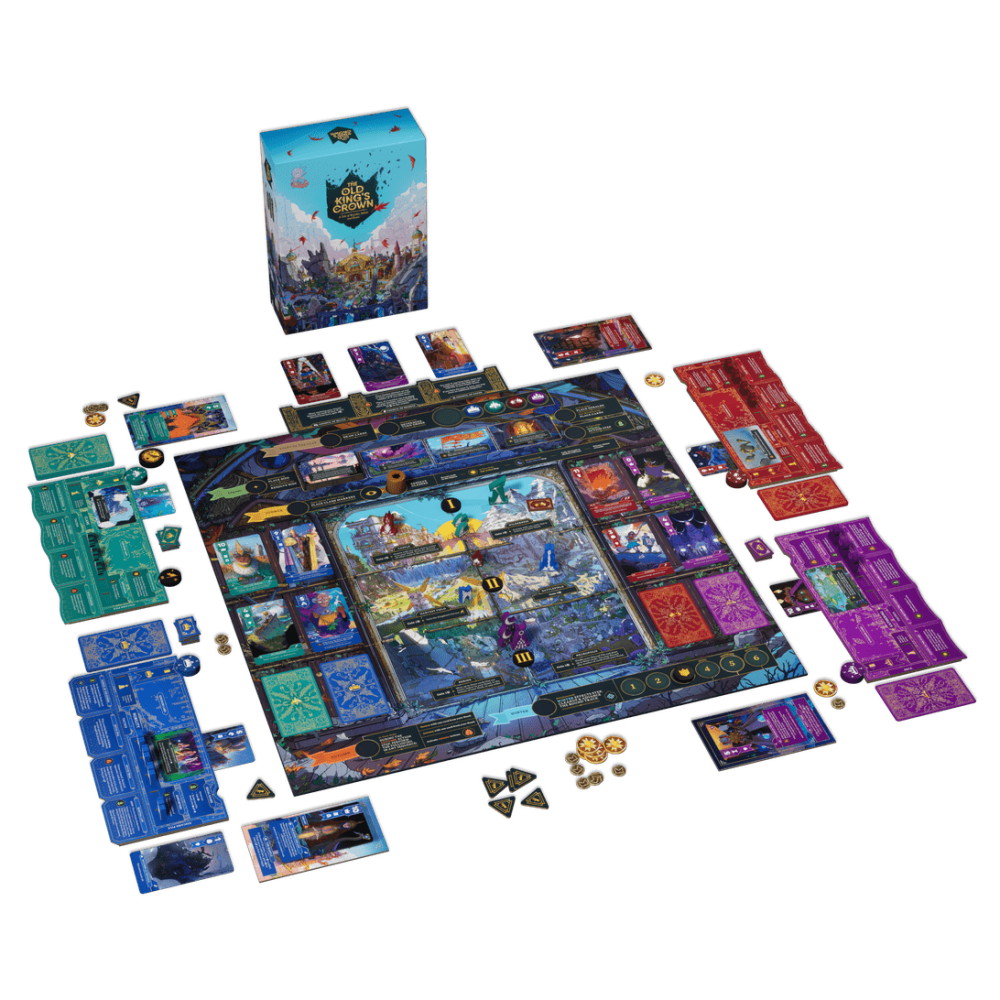 In The Old King's Crown, players move their Herald to locations, hoping to claim them. Then simultaneously players play cards from their hand, facedown to regions of the board. These are then revealed and resolved. Winning these clashes will result in different rewards that further their position and grant them the game's primary goal, influence. When a player is able to reach a set number of influence, dependent on player count, and is able to retain it until the end of a round, they win the game.