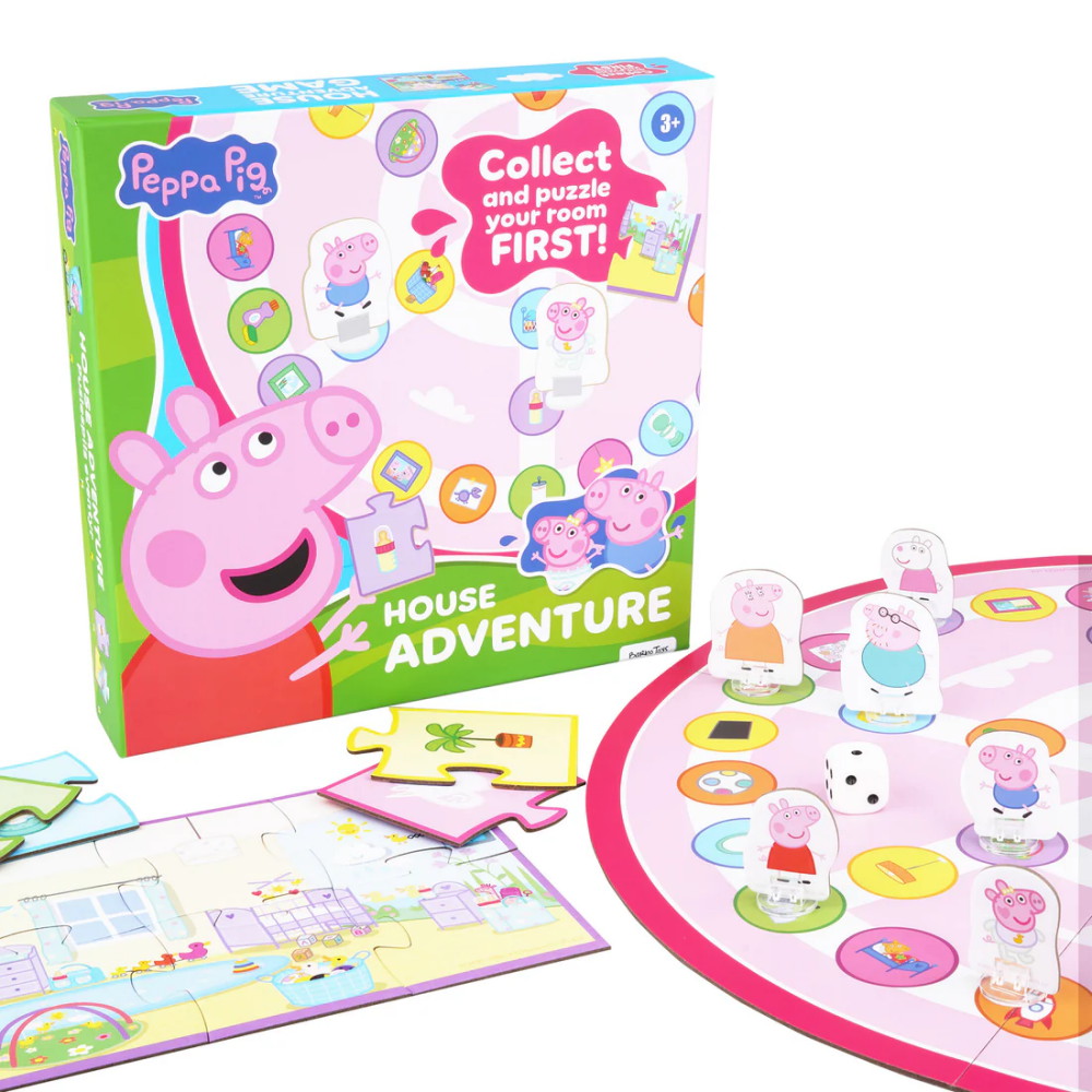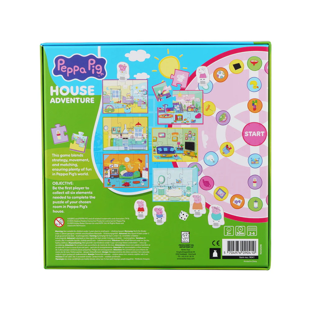 Värikkäiden kuvien ansiosta Peppan kodista, mukaan lukien keittiö, kylpyhuone, olohuone ja paljon muuta, tämä peli tarjoaa mukaansatempaavan tavan tutkia tuttuja tiloja samalla kehittäen hienomotorisia taitoja ja keskittymistä. Peli sisältää hahmonpaloja, nopan ja kuusi huonepalapeliä, mikä tekee siitä monipuolisen aktiviteetin nuorille Peppa Pig -faneille.