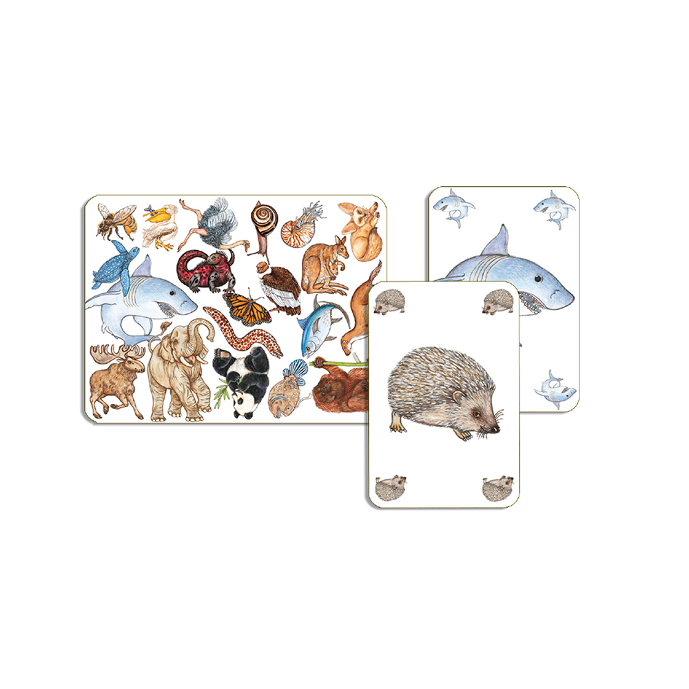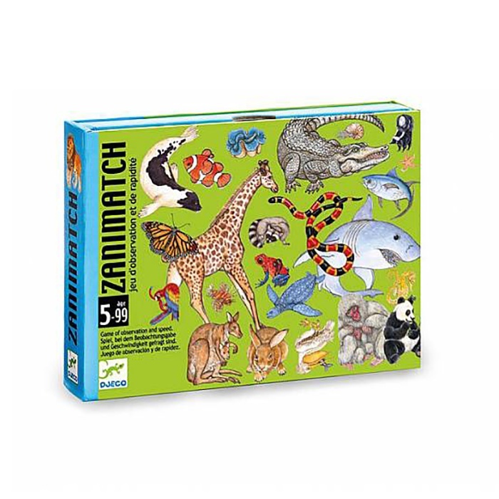 The game contains 72 cards (12 big cards with mixed animals and 60 animal cards