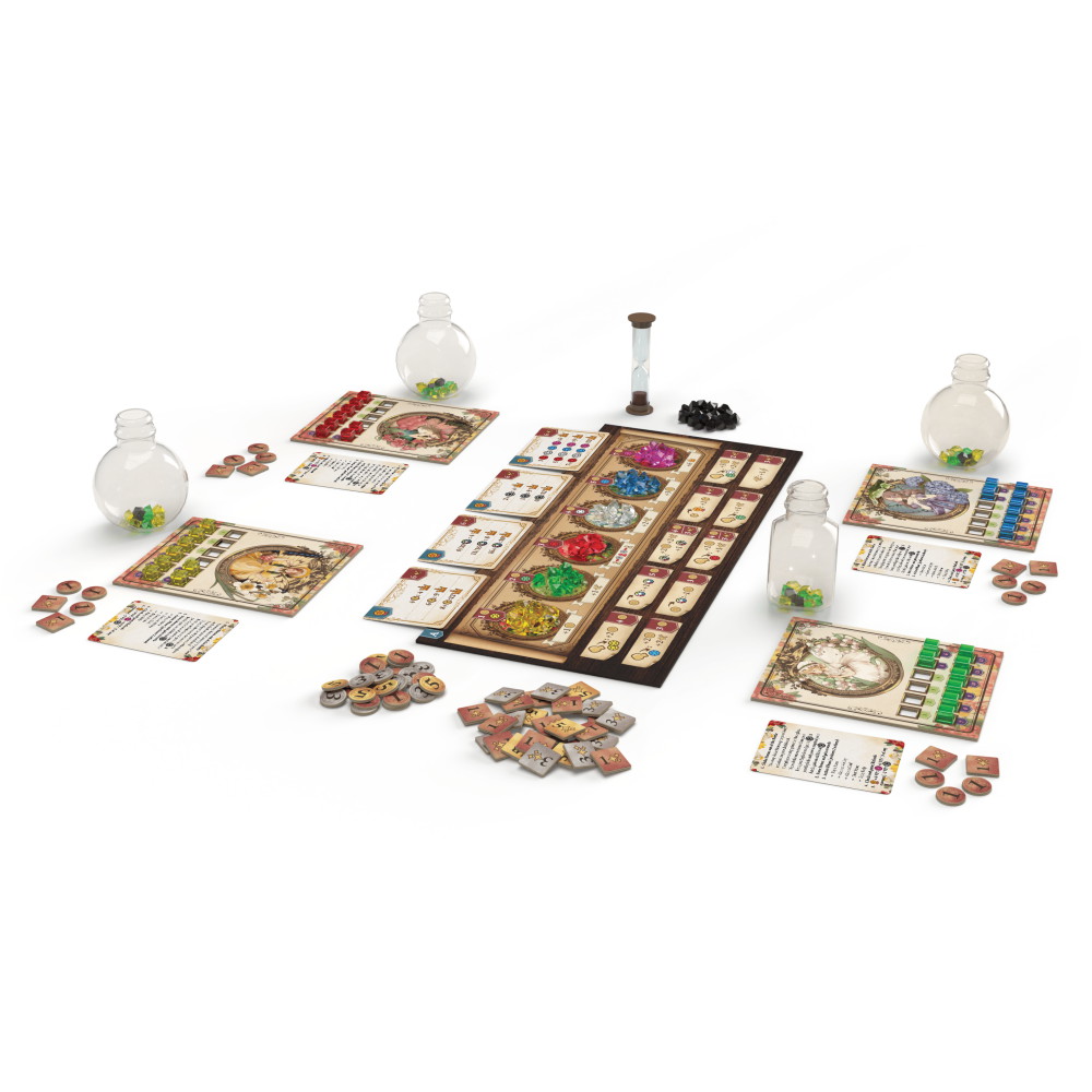 Pelin aikana hankit jalokiviä omalla taulullesi, talletat ne pulloon saadaksesi pisteitä ja ravistat esiin uusia kiviä – mutta liiallinen yrittäminen tuo nokisia hiilikimpaleita, jotka vähentävät lopputulosta. Voit kehittää kykyjäsi, poistaa tarpeettomia kiviä ja täyttää tavoitteita, jotka palkitaan pelin lopussa.