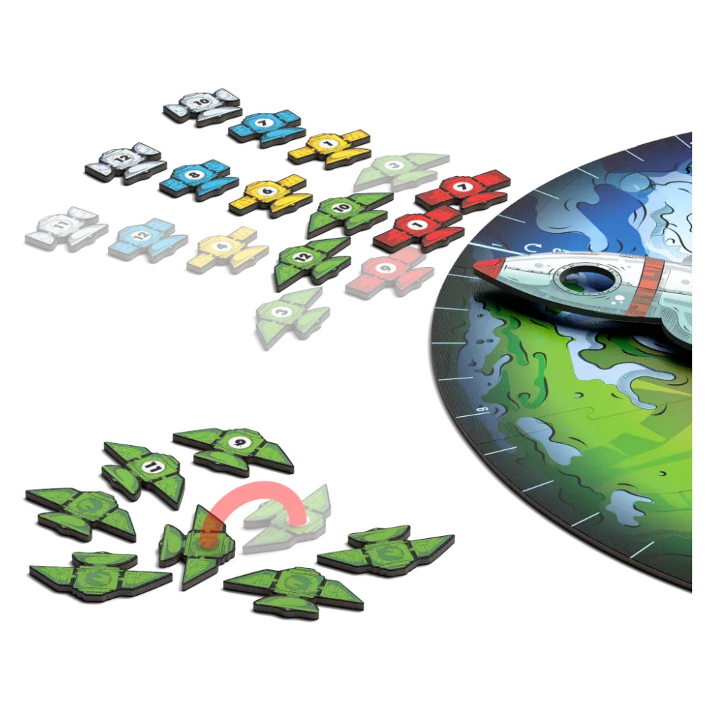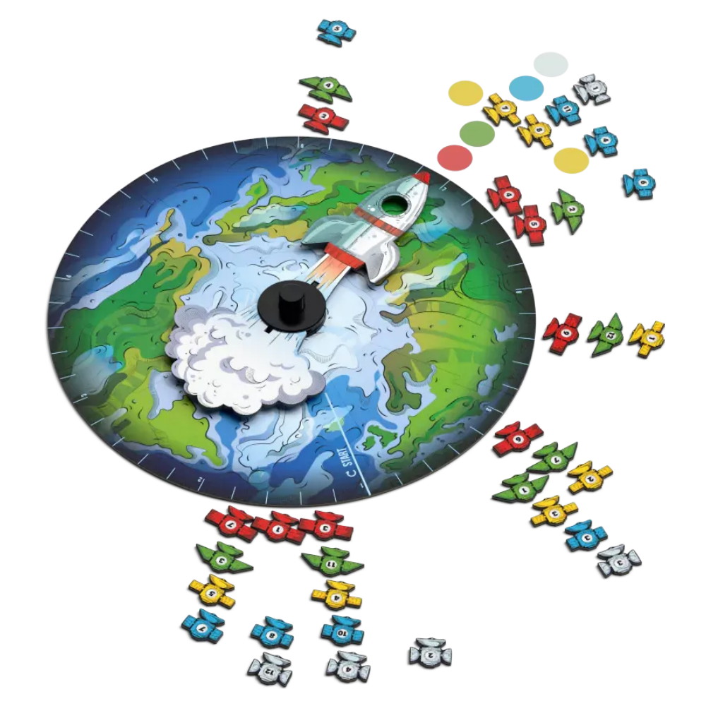 Your GPS satelites need to orbit the earth in the correct order. But your launch windows are limited. You can only launch satellites where the spinner points each turn. It is your job to pick the best satellite for each launch to get your birds in order before your opponents.
