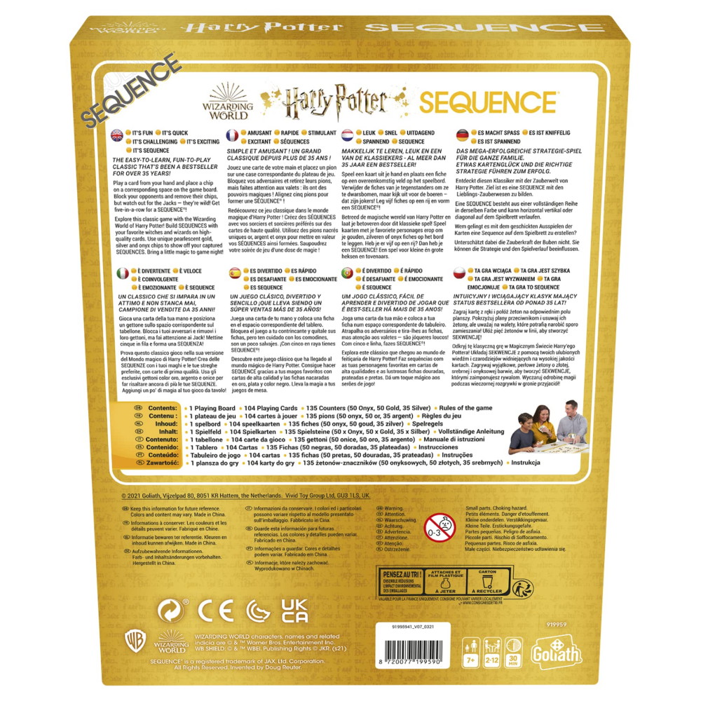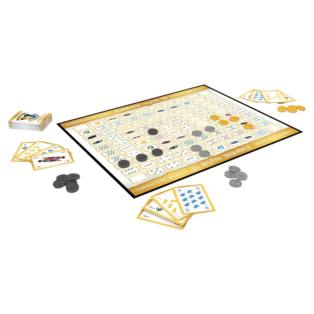 Explore this classic game with the Wizarding World of Harry Potter! Build Sequences with your favourite witches and wizards on high-quality cards. Use unique pearlescent gold, silver and onyx chips to show off your captured Sequences.
