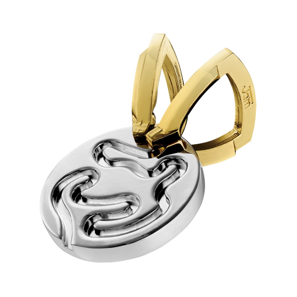 Kaksi rengasta liukuu vapaasti polkuja pitkin tasaisella pyöreällä kiekolla.