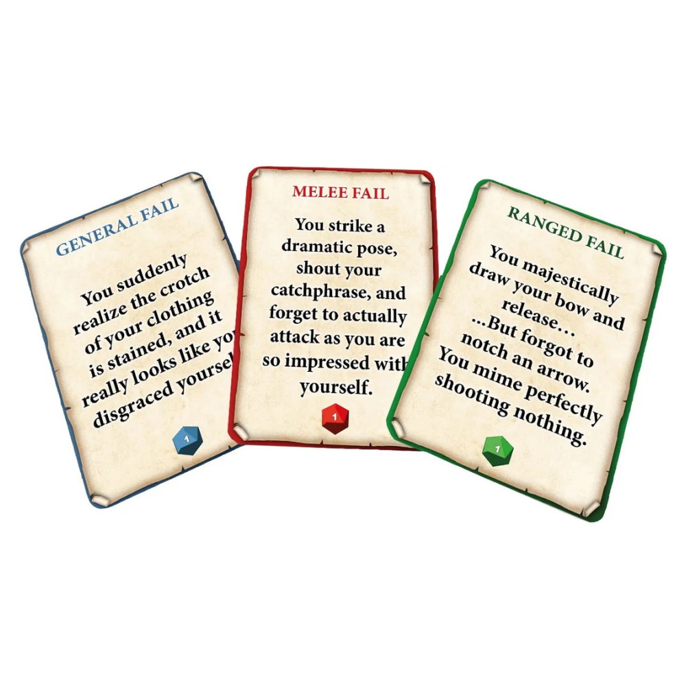 Kun kaikki menee pieleen roolipelissäsi, nämä kortit tuovat mukaan uusia, yllättäviä käänteitä. Taikuuden virheet, sosiaaliset katastrofit ja taistelun mokat saavat uusia, luovia seurauksia. Täydellinen sekä pelinjohtajille että pelaajille, jotka haluavat syventää roolipelikokemusta.
