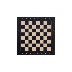 The chessboard has edge markings with numbers and letters, for algebraic notation and distance matches.