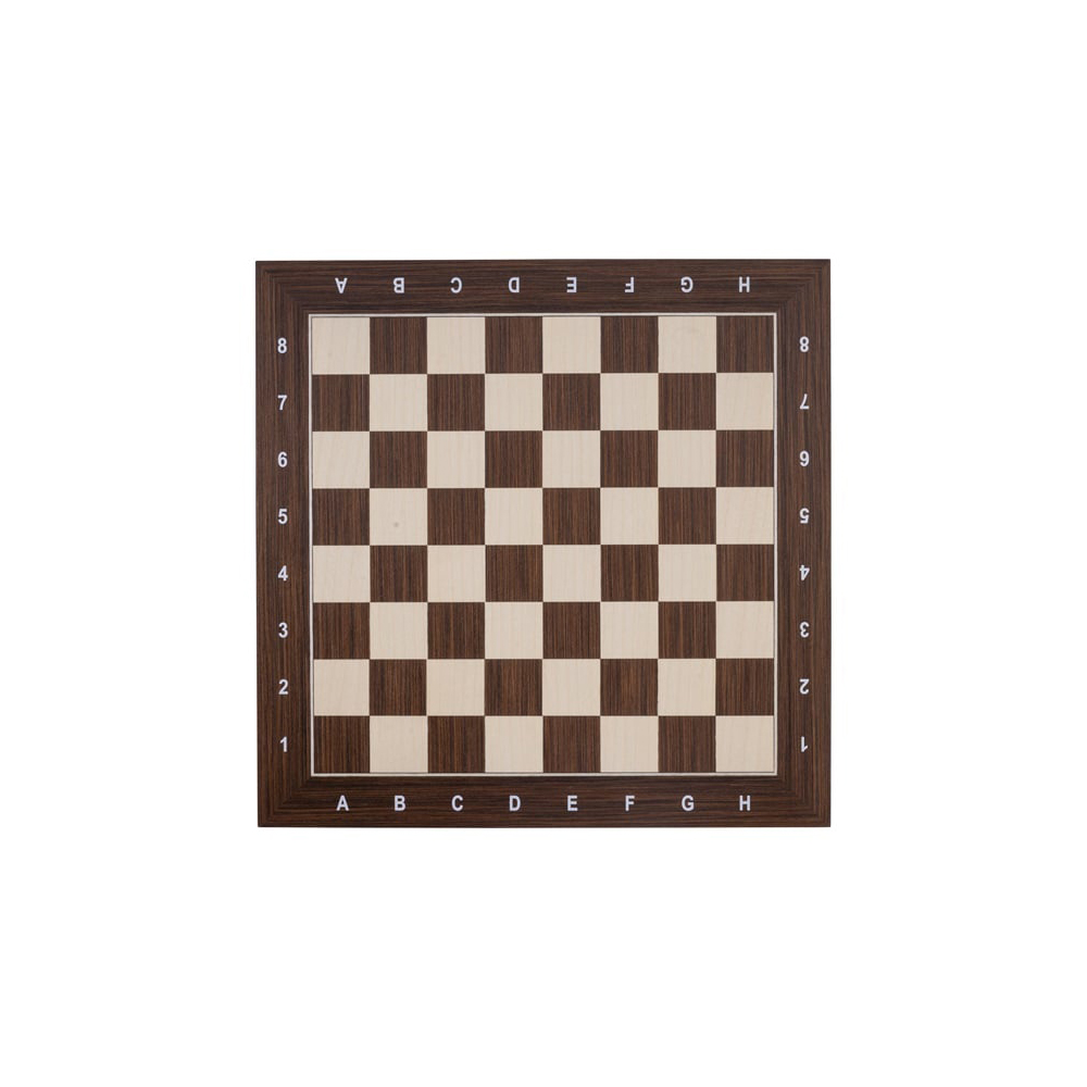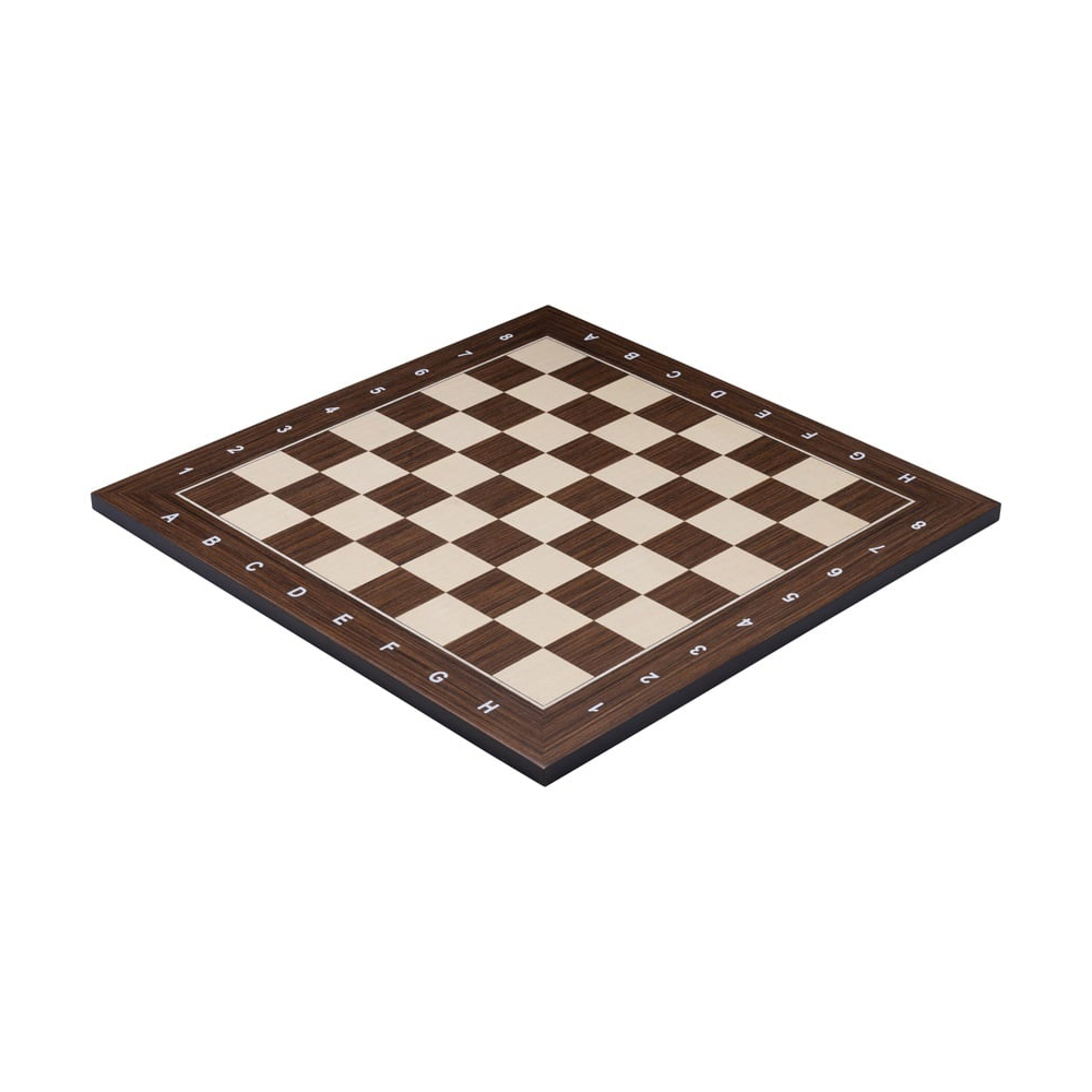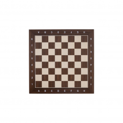 The chessboard has edge markings with numbers and letters, for algebraic notation and distance matches.