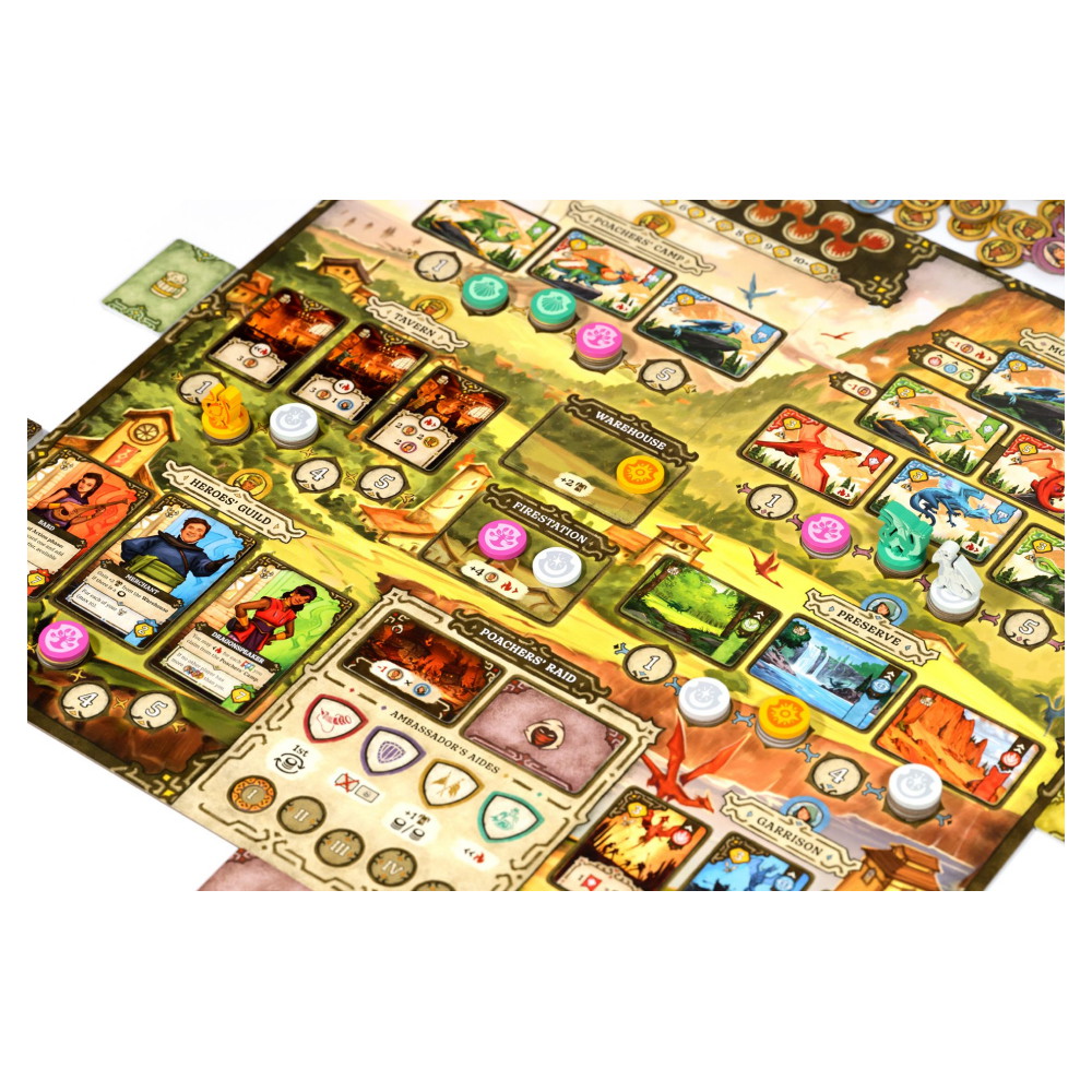 The locations' rewards allow you to recruit Heroes with unique abilities, rescue Dragons from the poachers’ grasp to get them to safety in matching Preserves, and launch counterattacks against the poachers. In the heat of some actions, and during the Poachers’ Raid at the end of each round, you may get burned, and advancing too far on the Flame track will take its toll at the end of the game.