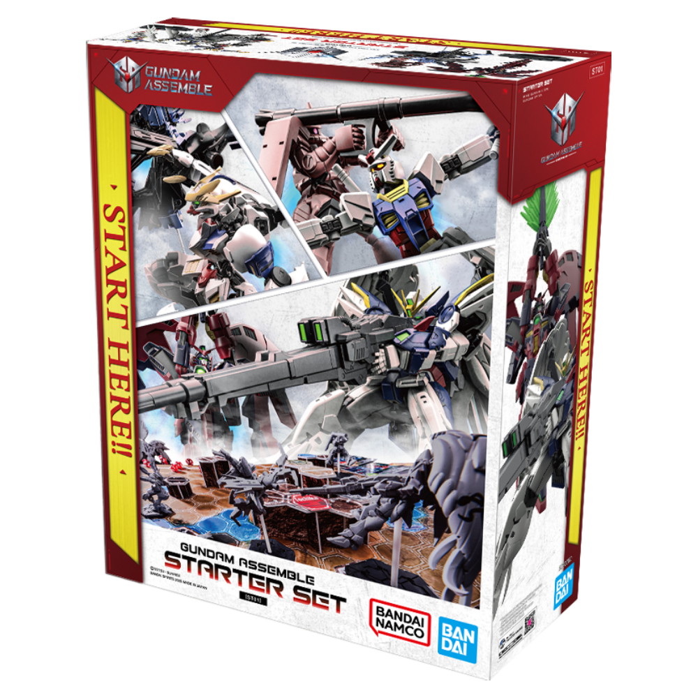Gundam Assemble Starter Set (ST01) tarjoaa täydellisen aloituksen tähän nopeatempoiseen miniatyyripeliin. Pakkaus sisältää kaiken tarvittavan 3 vastaan 3 -taisteluihin sekä ikonisia Mobile Suiteja, kuten RX-78-2, Char’s Zaku ja Wing Zero Custom. Kun figuurit on koottu ja maalattu, peli voi alkaa.