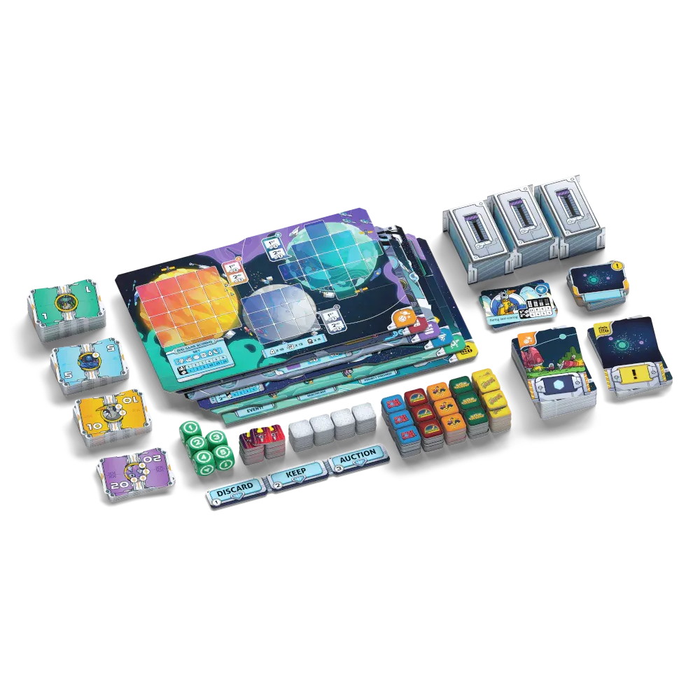 Through these cards, you'll manipulate the market, play intergalactic mini-games, and resolve universe-altering events. At the end, the player with the most money wins!