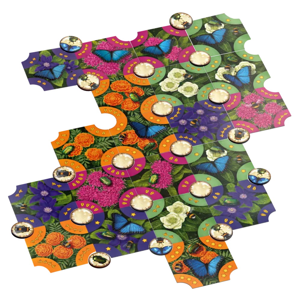There are some classic Reiner Knizia mechanisms at the heart of Pollen that guarantee an interactive (and even cutthroat!) game. The endgame scoring makes you pay extra attention to which types of insects you are collecting, not allowing you to focus only one one.
