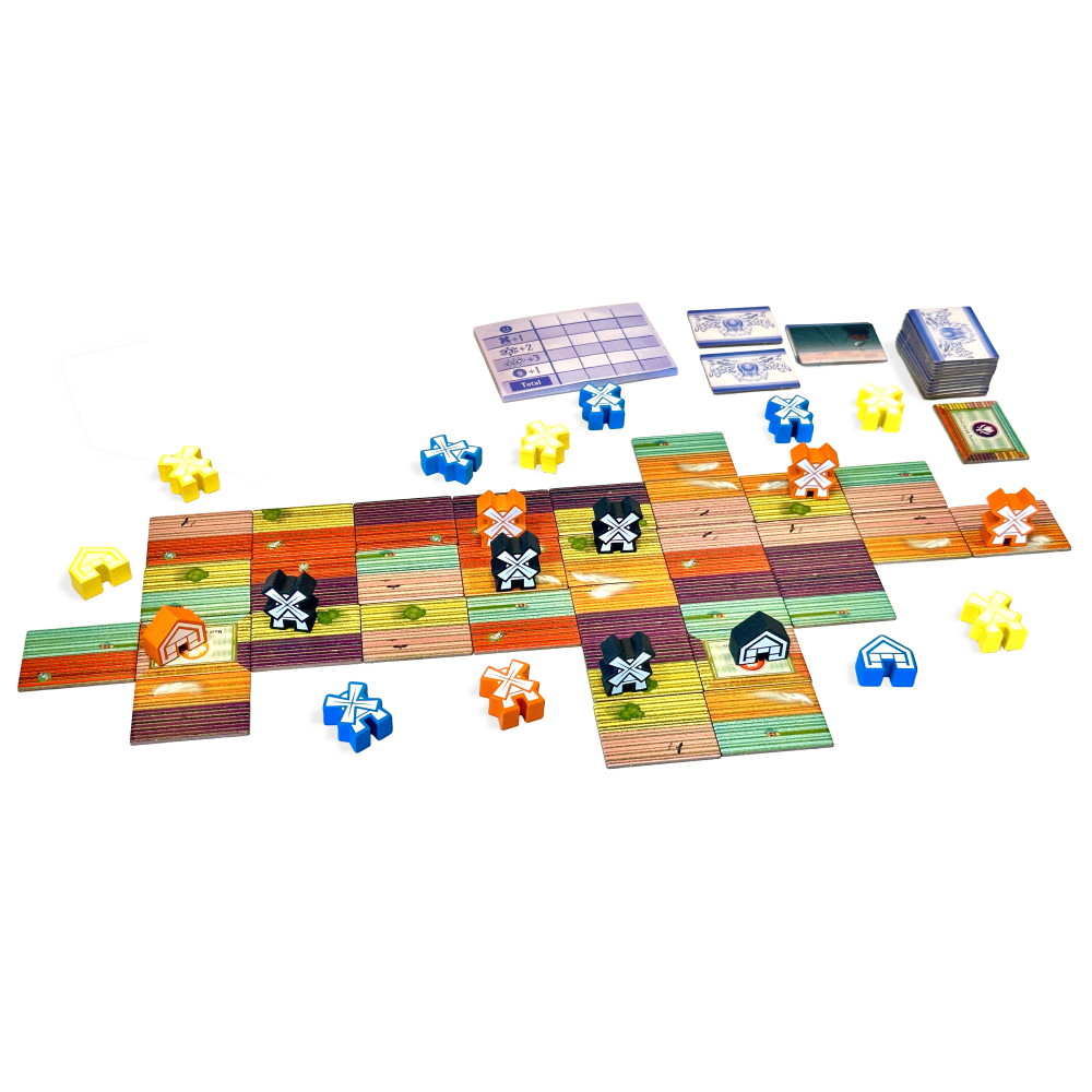 Lay one of two dual-coloured tulip tiles on your turn and place windmills to claim fields for points. Bonus end game points are awarded for public scoring goals selected randomly at the start of the game, and you can add another "greenhouse tile" scoring goal during the game that only you can score. Can you maximise its scoring *and* placement bonuses?