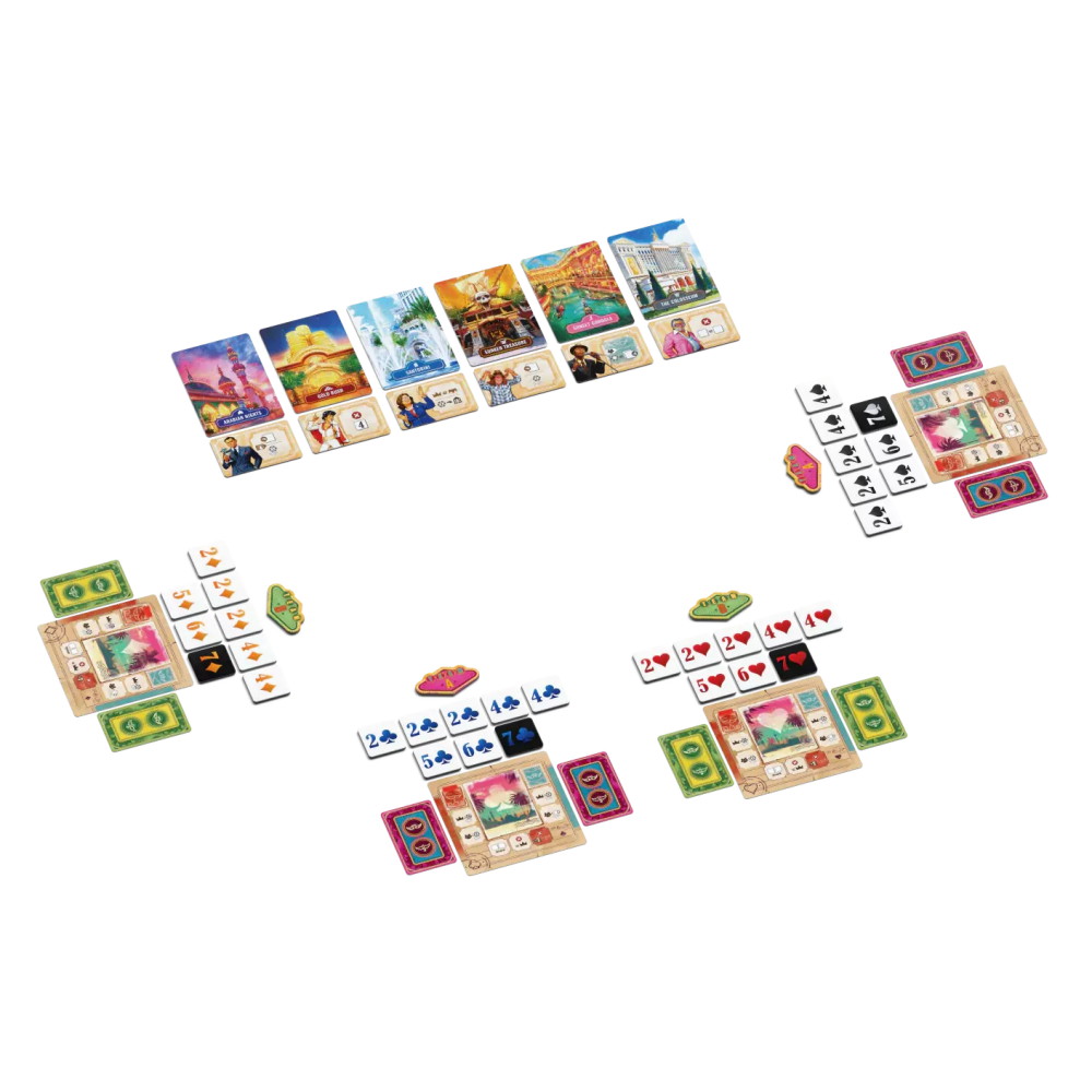 Players can’t place more than two tokens at a casino, and can’t place their highest token at the casino they know is corrupt. These restrictions affect your ability to bluff, forcing you into difficult situations.