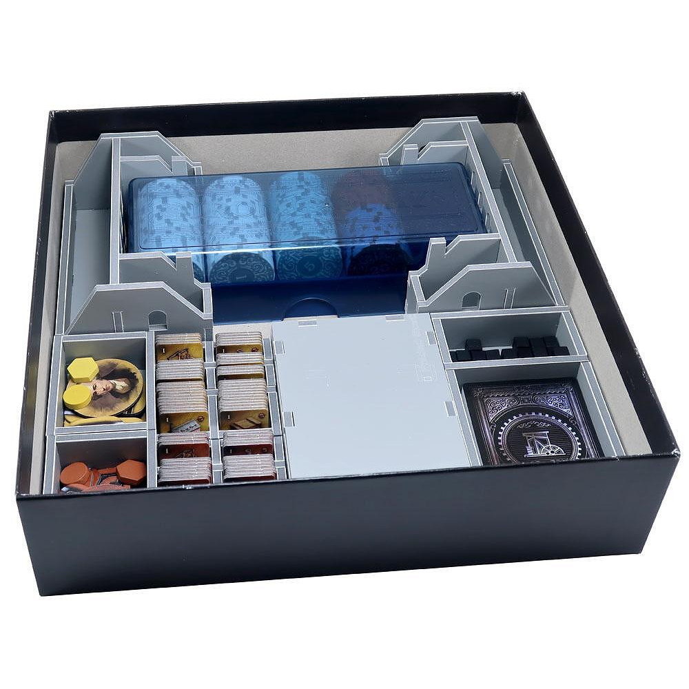 Insert designed for both the standard Retail game version with external box dimensions of 30,0 x 30,0 x 5,5 cm, and for the Deluxe game version with dimensions 30,0 x 30,0 x 7,5 cm.