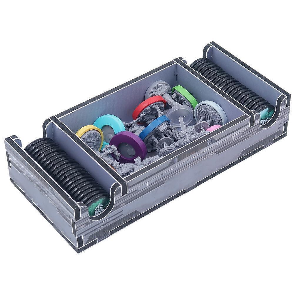 Muotoilu tarjoaa sekä tehokkaan säilytyksen että paremman pelattavuuden. Monia lokeroita voidaan käyttää pelin aikana, ja ne helpottavat huomattavasti peliä ja sen purkamista. Säännöt ja pelaajataulut toimivat kannen tavoin lokeroiden päällä.