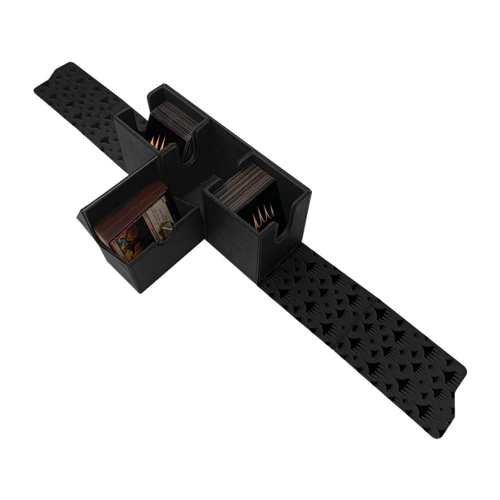 Magic: The Gathering – Deck Box Alcove Vault Mythic Edition sisältää useita lokeroita, joihin mahtuu useampi pakka sekä lisävarusteet. Kestävä rakenne ja magneettisuljenta pitävät kaiken turvallisesti paikallaan, ja selkeä jako helpottaa järjestämistä.