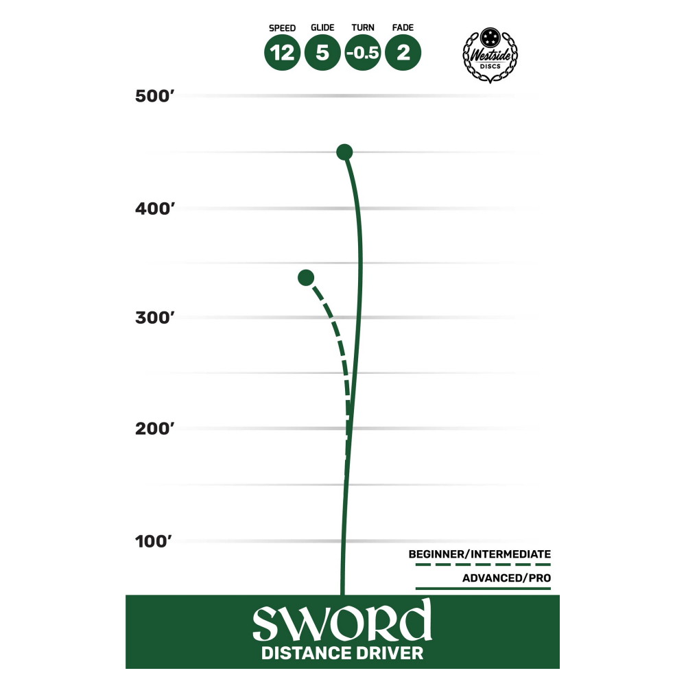 Kiekko pitää linjan, johon se heitetään, ja lentää suoraan ennen kuin päättyy luotettavaan hyzer-fadeen. Pelaajille, joilla on suuri heittovoima, Sword tarjoaa pitkiä ja ennustettavia heittoja, kun taas hitaammalla heittovoimalla se antaa lisäpituutta ilman että tarkkuus kärsii.